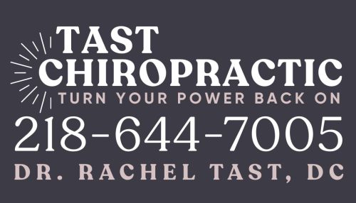 Dr. Rachel Tast is a third-generation Chiropractor. She graduated from Northwestern Health Sciences University with a Doctor of Chiropractic degree in April of 2022. She is passionate about helping her patients get back to doing what they love. Dr. Tast uses a combination of Diversified adjusting techniques, activator and SOT methods to treat patients of all ages, including babies. Dr. Tast is also Webster Certified, which is a technique specifically used to adjust pregnant women. Now offering Low Level Laser Therapy (LLLT). Open for appointments Monday, Tuesday, Thursday, and Friday. To schedule call/text 218-644-7005 or schedule online [Tast.janeapp.com].